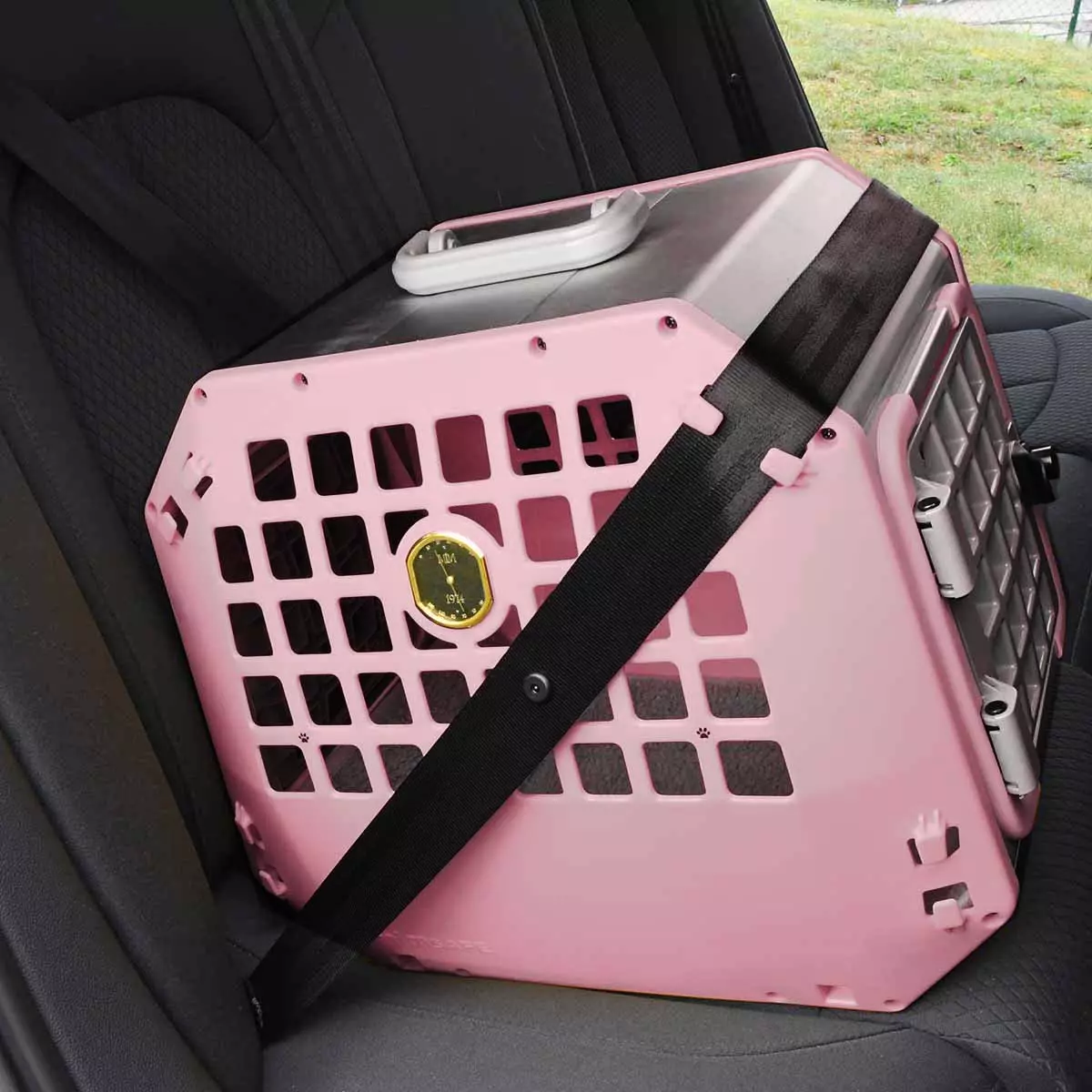 Montering av Care2 Pink L skjer enkelt ved å bruke bilens eget setebelte og tydelig merkede festepunkter. Buret kan plasseres i både fremre og bakre seter etter behov, og det har praktiske bærehåndtak som gjør det enkelt å flytte det inn og ut av bilen. Den lette konstruksjonen kombinerer styrke og portabilitet for daglig bruk og lengre turer. :contentReference[oaicite:2]{index=2}