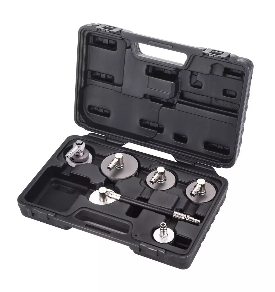 Adaptersatsen inneholder seks ulike adaptere som dekker et bredt spekter av kjøretøy. Dette gjør settet fleksibelt og anvendelig for mange bilmerker og modeller med forskjellige utforminger på bremsevæskebeholderens lokk. Riktig adapter bidrar til å opprettholde stabilt trykk under hele luftingsprosessen, noe som reduserer risikoen for lekkasje og luft i systemet.