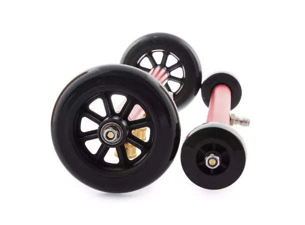 Turisimo Mini Wheels leveres i en 2‑pakning som inkluderer spesialverktøy for enkel montering. Hjulene kan monteres og byttes raskt uten behov for ekstra kjøpte verktøy, og de medfølgende skivene gir mulighet for finjustering slik at de sitter optimalt på underspyleren. Dette gjør det enkelt å oppgradere din bilvaskrutine og komme under bilen med minst mulig anstrengelse.